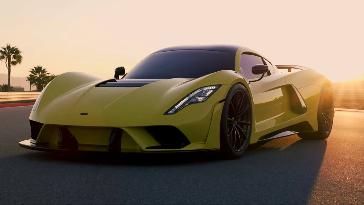 1. Hennessey Venom F5 Максимальная скорость: 484 км/ч Этот спорткар оснащён бензиновым V8 с двойным турбонадувом, объёмом 6,6 литров и мощностью 1842 л.с. У него 7-ступенчатая полуавтоматическая коробка передач, а кузов и шасси изготовлены из углеродного волокна. Разгон до 100 км/ч: 2,3 с Масса автомобиля: 1338 кг. Цена: 1,6 млн $ (113,5 млн. руб.) 2. Bugatti Chiron Super Sport 300+ Максимальная скорость: 482 км/ч Этот спорткар оснащён бензиновым W16 с 4-мя турбокомпрессорами, объёмом 8 литров и мощностью 1600 л.с. У него 7-ступенчатая автоматическая коробка передач. Разгон до 100 км/ч: 2,5 с Масса автомобиля: 1978 кг. Цена: 3,5 млн € (284,4 млн. руб.) 3. Koenigsegg Agera RS Максимальная скорость: 456 км/ч Этот гиперкар оснащён бензиновым V8 с 2-мя турбокомпрессорами, объёмом 5 литров и мощностью 1360 л.с. У него 7-ступенчатая роботизированная коробка передач с 2-мя сцеплениями. Разгон до 100 км/ч: 2,5 с Масса автомобиля: 1295 кг. Цена: 2,2 млн $ (142 млн. руб.) 4. SSC Tuatar