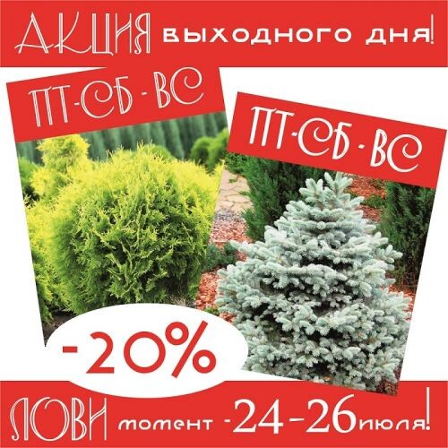 Только 3 дня! (с 24 по 26 ИЮЛЯ) СКИДКА 20 % на ВСЕ ХВОЙНЫЕ РАСТЕНИЯ!