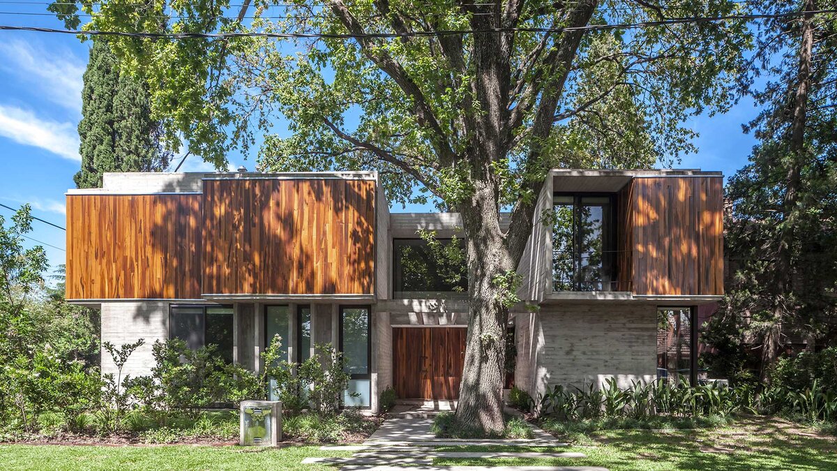 Очень красивая и стильная архитектура виллы в аргентинском городке Тортугитасе выражает актуальную современную концепцию эко-френдли жилища. При строительстве этого большого загородного дома, расположенного в густом реликтовом дубовом лесу, не пострадало ни одно дерево. Проект Aranzazu был разработан архитектурами местного бюро Besonías Almeida и был реализован в 2017 году.