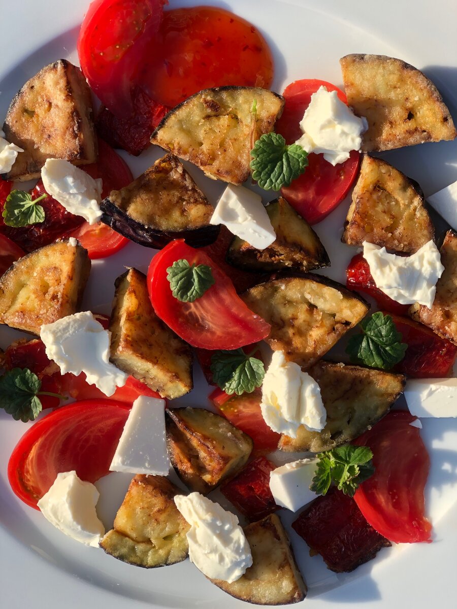 Если вы смотрели мультфильм Рататуй, то... Не смотрели?! Что вы здесь еще делаете? И все же если вы видели сцену с клубникой и сыром, и звездочками вокруг головы как нимб, вы меня поймете! Они у вас полетят! В любом грузинском ресторане вы сейчас найдете салат с хрустящими баклажанами. От Грузии в нем... ничего. Но: состав «наркотика» ✅ Баклажаны по 1 шт/чел ✅ Помидоры лучшие - по 2 шт/чел ✅ Красный перец факультативно ✅ Соус сладкий чили - по вкусу ✅ Кунжутное масло по вкусу для заправки ✅ Крахмал для обваливания баклажанов ✅ Крем-чиз (лучше кремообразный), если нет - берите брынзу. Творожные синтетики не подойдут. Козий шевр - это будет восхитительно ✅ Соль, перец по вкусу ✅ Растительное масло для жарки, много ✅ Кинза - маленький пучок ✅ Зеленый лук - маленький пучок ✅ Семечки - горсть 🍳 В этом деле важно пожарить синенькие! Они должны быть молоды, не дряхлы и не безнадежны! Режем их толщиной не менее 2 см, и шириной не менее 3 см., чтобы после обжарк