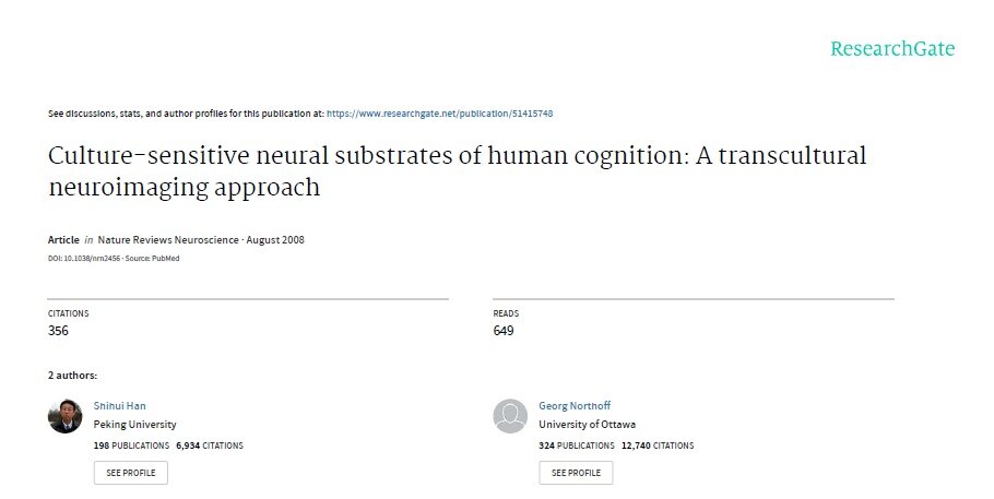 Называется «Culture-sensitive neural substrates of human cognition: a transcultural neuroimaging approach». Это первая научная работа, которую я читала полностью в оригинале, то бишь на английском. Но я справилась.