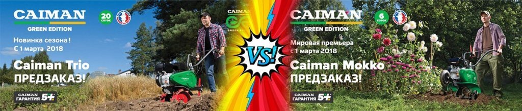 Скоро весна и к первому марта подоспеют новинки от французского бренда Caiman – это две новые модели культиваторов. Caiman TRIO 70 C3 и Caiman MOKKO 40 C2 – сейчас их можно предзаказать, а с первого дня весны они поступят в прямую продажу.