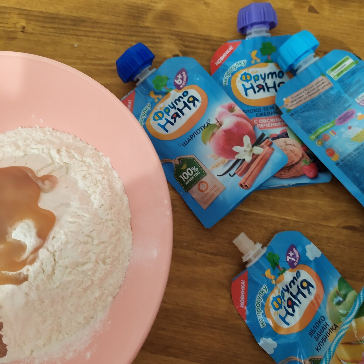 Делюсь вкусным рецептом оладий, которые сохранят вашу фигуру и здоровье. Сыну подарили много детских пюре, но я стараюсь не давать ему магазинную еду. Поэтому сделаю оладьи. Ингредиенты: 1. В чашке смешиваем муку соду и пюре. 2. Добавляем воду. Вода должна быть очень горячей. Все хорошо перемешиваем до состояния густой сметаны. 3. Жарим оладьи на среднем огне, с двух сторон. Я использую ложку для мороженого. Это очень удобно. Все одинаковые. И тесто легко выкладывать, так как внутри ложки имеется нож.