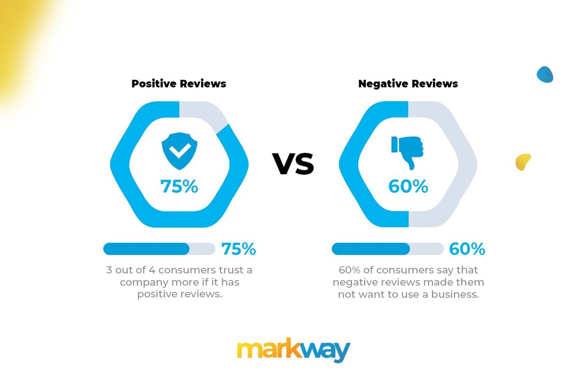 - 74% потребителей будут доверять бренду, если увидят о нем преимущественно положительные отзывы.