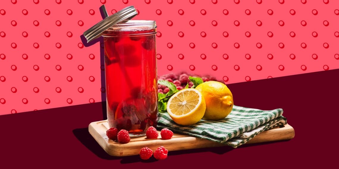 В кастрюле вскипятите воду. Добавьте сахар, а после его растворения — малину, смородину и лимонную кислоту. Оставьте на огне на 5–7 минут. Потом накройте крышкой и остудите.