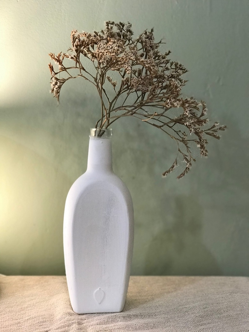 Просто скажу, как мне нравится веточка в белой бутылке на фоне стены цвета сухого эвкалипта.