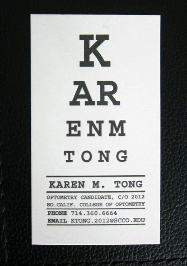 Говорят, тема вовсе неактуальная. Визитками никто не пользуется. Они ушли в прошлое. И лучше уделять внимание другим точкам контакта - эффекта больше будет. Поэтому тратиться на дизайн визитки, заказывать их и печатать смысла нет никакого. А как же продвижение? Разве нельзя забабахать крутой дизайн-визитки, а потом постить и продвигать ее в интернете? Тем самым привлекать внимание к себе, к своему бизнесу, вызывать удивление и обсуждения? В этой подборке 15 визиток, которые заставят вас как минимум взглянуть на дизайн своей визитки свежим взглядом, и даже пересмотреть ее. 1. Дизайн визитки окулиста Вот, к примеру, дизайн визитки окулиста. Разве это не шедевр? Достаточно взглянуть на нее, как ты сразу поймешь, чем занимается человек. А все потому что деятельность человека уже вложена в дизайн. Каждый из нас бывал у окулиста. И этот визуал не спутать ни с чем. 2. Дизайн визитки пекарни Печенье - идея проста и понятна. Она лежит на поверхности, что придумывать более понятный, доступный,