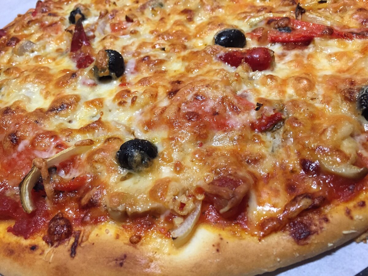 Я называю это блюдо пиццей, а друзья - кулебякой. Когда куда-нибудь еду, всегда готовлю ее в дорогу. Из муки, кефира, щепотки соды и соли замесить тесто, как на блины, но плотнее На тесто выложить кружочки свежих или маринованных помидоров.( У меня свежие помидоры есть всегда, потому что их урожай я замораживаю впрок). На томаты выложить слой любой мелко нарезанной колбасы, измельчённые консервированные грибочки , маслины ( если есть), посолить, посыпать всё пряностями по вкусу и сыром, натёртым на мелкой тёрке. Затем края пиццы, приподняв, защипать, чтобы сверху осталось небольшое "окошко", влить в него заливку из смеси томатного соуса и майонеза. Запечь в духовке на сковороде, смазанной растительным маслом. Такая пицца вкуснее всего на второй день, когда уже хорошо пропиталась соусом. Она сочная, но в то же время не разваливается и режется хорошо, потому что начинка внутри схватывается сыром. Приятного аппетита!!! Не забудь подписаться и поставить лайк.