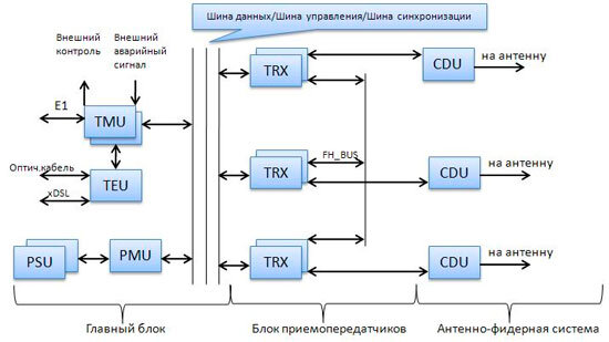 Основной блок BTS, блок приемопередатчиков – TRX, антенно-фидерная система связи. Более подробно расположение блоков на схеме базовой станции.