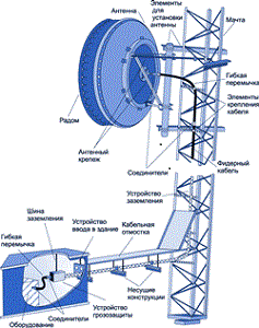 - Габаритные базовые станции,которые покрывают большие расстояния, связываются между собой через радиорелейные тарелки.