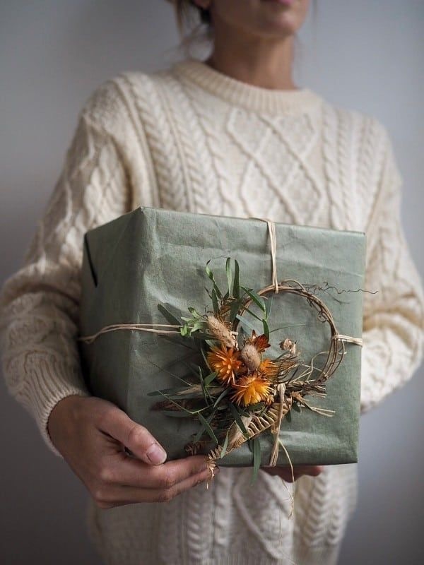 1) Как красиво смотрится веночек из веточек и сухоцветов, прикреплённый к подарку🌿