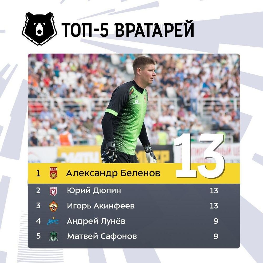Лучшим голкипером завершившегося сезона РПЛ стал представитель "Уфы" Александр Беленов. Основание – наибольшее количество сухих матчей (13). Столько же матчей на ноль у Игоря Акинфеева и Юрия Дюпина, но Беленов их опередил потому, что провел на поле меньше минут. Поставьте лайк, поддержите развитие канала! Подписывайтесь, чтобы не пропустить следующие посты.
