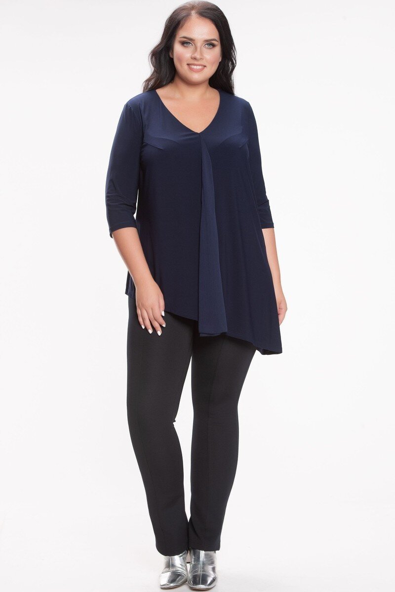 Например, блуза А-образного силуэта из трикотажного полотна глубокого синего цвета с асимметрией по низу и шифоновой вставкой выручит вас в разных ситуациях. Что-то подобное обязательно должно быть вашем гардеробе.