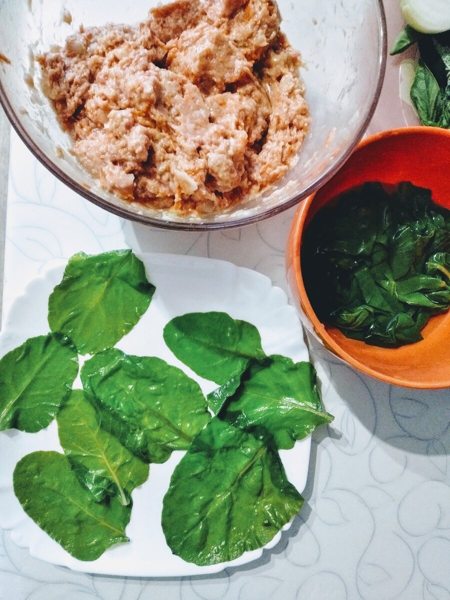Давно хотела приготовить листья мангольда или кейла с фаршем. Как-то читала, что это блюдо популярно у европейцев. К счастью, на даче вырос мангольд, и я сразу же решила действовать. На первый раз приготовила блюдо из небольших молодых листьев, позже – уже из подросших. Мне ооочень понравилось. Получилось вкусно, причем не менее вкусно наших голубцов. Если вам интересно, как приготовить фаршированный мангольд, то рада поделиться своим рецептом. Ингредиенты (на 2-3 персоны): · небольшие листья мангольда (20-40); · 200-250 г фарша (мы использовали из индейки); · 1 морковь; · 2 средних лука (репчатых); · 1-2 ст. ложек томатной пасты; · 1 яйцо; · черный перец, соль и любимые приправы (немного). Порядок действий: 1) Листья мангольда промываем и заливаем кипятком. Оставляем на 30-50 минут. 2) В это время готовим фарш. Можно использовать покупной. Мы любим в этом случае «Индилайт» из индейки. Солим, перчим, добавляем 1 яйцо, мелко нарезаем лучок. По желанию можно добавить зеленой приправ