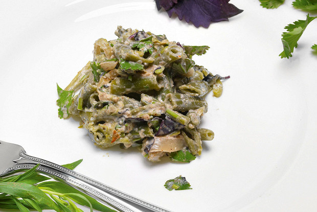 1. Фасоль (лучше всего для этих целей подходит длинная грузинская) нарезать крупными кусками и отварить — на что уйдет минут двадцать после начала кипения. Дать остыть.