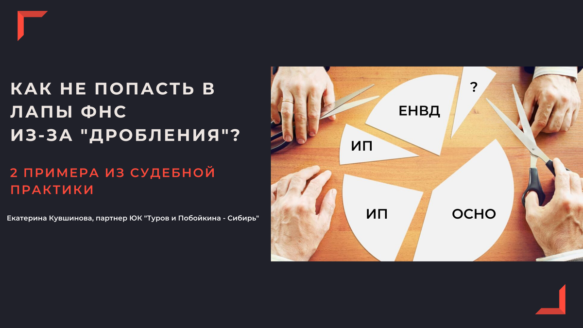 Добрый день, коллеги. Меня зовут Екатерина Кувшинова, я - налоговый юрист, партнер ЮК "Туров и Побойкина - Сибирь".