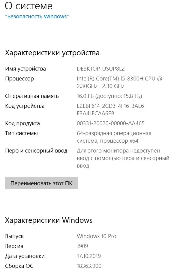 Итак, вот скриншот "Свойства системы" с параметрами моего ноутбука:
