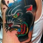 Значения: ярость, женственность, свирепость, мужество, хитрость, упорство. Образ пантеры за долгое время своего существования среди людей разных культур и народов приобретал относительно схожие значения и отношение к себе. И так сегодня значение татуировки пантера определяется такими символами и качествами: смелость и сила, мужество и храбрость, власть и лидерство, любовь к семье и её защита, свирепость и бесстрашие, хитрость и упорство, любовь к жизни и свобода от всяческих ограничений и рамок, стремительность и возрождение. Пантера соединяет в себе отличные бойцовские качества и одновременно трепетную, материнскую нежность. Крадущаяся пантера в искусстве татуировки имеет особое значение. Она символизирует хрупкость и тленность жизни, быстроту и недолговечность нашего существования, указывая на то, что наша жизнь может в любой момент прерваться от броска свирепой пантеры. Такая татуировка служит постоянным напоминанием о грядущей смерти, и тем самым заставляет её носителя задумывать