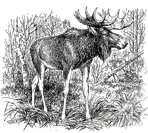 Теперь вижу и я. Неторопливо из подлеска выплывает огромная фигура зверя. Мощный торс, большие ветвистые рога, длинные худые ноги-костыли. Да это же лось! Никогда прежде не видал сохатого, и сейчас, затаив дыхание, смотрю, как крупный бык величественно шагает прямо к нам.