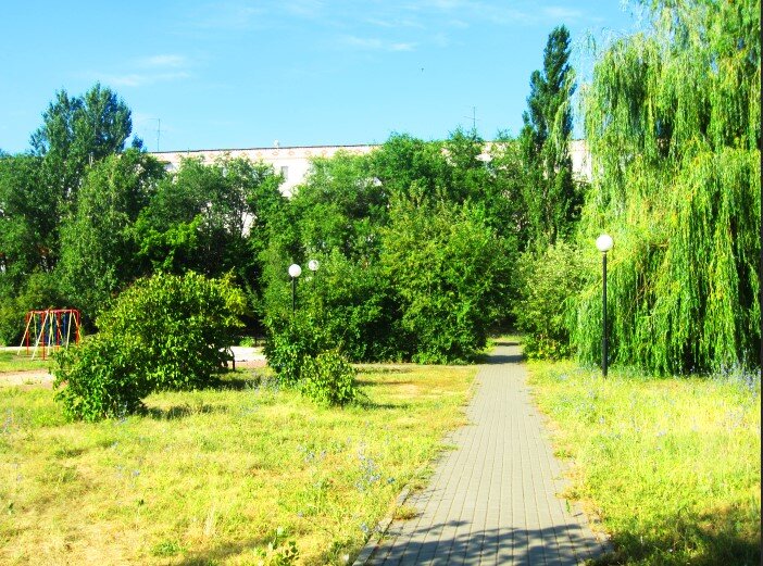 Сейчас середина лета. У нас больше недели стоит жара. Травы уже не такие зелёные, как в июне. И в парках траву уже скосили.