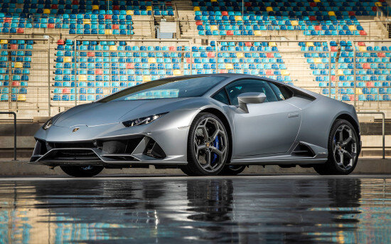 Lamborghini Huracan EVO – задне- или полноприводный спорткар премиум-класса со среднемоторной компоновкой и двуместным слоном, доступный в двух кузовных исполнениях: двухдверное купе и родстер со складным мягким верхом… «Итальянец» сочетающий в себе эффектный дизайн, прогрессивную техническую и технологическую «начинку» и отличный «ездовой» потенциал, адресован самодостаточным людям, предпочитающим лично управлять автомобилем, причем не только опытным драйверам, но и тем, кому важнее именно вау-эффект… Премьерный европейский показ серьезно обновленного спорткара Lamborghini Huracan, получившего приставку EVO к названию, состоялся 7 февраля 2019 года в Москве – отчасти за закрытыми дверями в ходе грандиозного шоу, устроенного итальянским автопроизводителем, доступ на которое получили исключительно избранные журналисты и клиенты бренда, и после московского дебюта двухдверка отправилась в турне по столицам стран Евросоюза. Уже в следующем месяце вслед за полноприводным купе перед мировой общественностью на стендах Женевского автосалона предстал родстер Spyder, в то время как премьера закрытой заднеприводной двухдверки прошла лишь в начале января 2020 года. Рестайлинг оказался действительно существенным, причем для планового обновления суперкара широко использовались наработки «топовой» версии Performance, причем не только технические, но и аэродинамические. Вообще, в результате модернизации автомобиль эволюционировал внешне и внутри, стал мощнее и динамичнее, обзавелся полноуправляемым шасси, а также получил новые современные «прибамбасы». Выглядит Lamborghini Huracan EVO действительно сногсшибательно, причем вне зависимости от модификации, моментально приковывая к себе взгляды окружающих. Хищная «физиономия» с агрессивным взором светотехники и огромным воздухозаборником практически во всю ширину «фигурного» бампера, приземистый силуэт с заостренным «носом», мускулистыми боковинами и основательной кормой, эффектный тыл с изящными фонарями, двумя «крупнокалиберными стволами» выхлопной системы и развитым диффузором – суперкар хорош собой, с какого ракурса ни глянь. Размеры и вес В длину Lamborghini Huracan EVO простирается на 4520 мм, из которых 2620 мм занимает расстояние между передней и задней осями, в ширину насчитывает 1933 мм (с учетом боковых зеркал – 2236 мм), в высоту не превышает 1165 мм (родстер на 15 мм выше). «Сухая» масса двухдверки варьируется от 1389 до 1542 кг в зависимости от модификации, причем у заднеприводного варианта развесовка по осям составляет 40:60 в пользу задней части, а у остальных – 43:57. Интерьер Внутри Lamborghini Huracan EVO царит спортивная обстановка – рельефный трехспицевый мульти-руль с усеченным в нижней части ободом, полностью виртуальная комбинация приборов и эффектная передняя панель с шестиугольными дефлекторами вентиляции и покатой центральной консолью, которую украшают 8.4-дюймовый тачскрин информационно-развлекательного комплекса и физические переключатели и тумблеры, заведующие второстепенными функциями. В активе суперкара – не самая продуманная эргономика, но премиальные отделочные материала и высокий уровень исполнения. Салон «итальянца» – строго двухместный, вне зависимости от модификации. Штатно автомобиль снабжается креслами-ковшами с интегрированными подголовниками, ярко развитым боковым профилем и достаточными ин