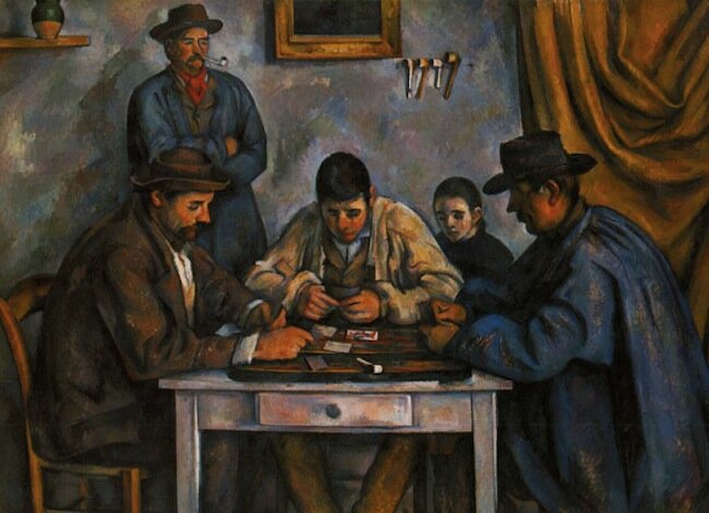 1. Самая дорогая картина Рейтинг самых дорогих в мире картин постоянно меняется, так как на аукционы периодически поступают произведения известных мастеров, которые желают приобрести коллекционеры со всего мира. В 2012 году такой дорогостоящей покупкой смог похвастаться Король Катара, купив за двести пятьдесят миллионов долларов уникальное полотно «Игроки в карты» кисти Поля Сезанна. Картину пожелали купить известнейший арт-дилер и состоятельный владелец галереи, готовые заплатить за шедевр двести двадцать миллионов долларов. «Игроки в карты» является последней, написанной мастером в период с 1880 по 1897 годы картиной, входящей в серию, посвященную карточным играм. Произведения этого цикла относятся к позднему периоду творчества мастера, Сезанн был вдохновлен работой Караваджо «Игра в карты с шулерами», и задумал создать нечто похожее. Натурщиками для художника служили простые прованские крестьяне, причем позировали они ему поодиночке, чему свидетельствуют наброски к полотну. На пе