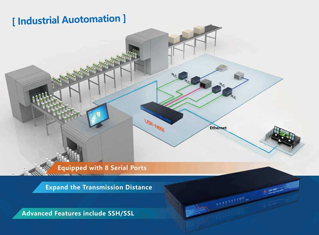 Начиная с производства первого последовательного преобразователя в Ethernet , технология, становится все более надежной и находит все более широкое применение в течение 10 лет разработки. Однако, поскольку число заводов, производящих это устройство, растет, гомогенизация и ценовая конкуренция в этом секторе становятся все более серьезными. В связи с этим крайне важно, чтобы преобразователь последовательного интерфейса в Ethernet выполнял модернизацию и совершенствование, и, таким образом, появился 8-портовый преобразователь последовательного интерфейса в Ethernet. Этот документ дает представление о применении 8-портового последовательного преобразователя Ethernet. Принцип работы 8-портового последовательного преобразователя Ethernet аналогичен принципу действия однопортового. Они оба передают последовательные данные RS232 / 485.422 в сетевые данные TCP / IP, а 8-портовый преобразователь последовательных в Ethernet может увеличить расстояние передачи устройства. По сравнению с трад