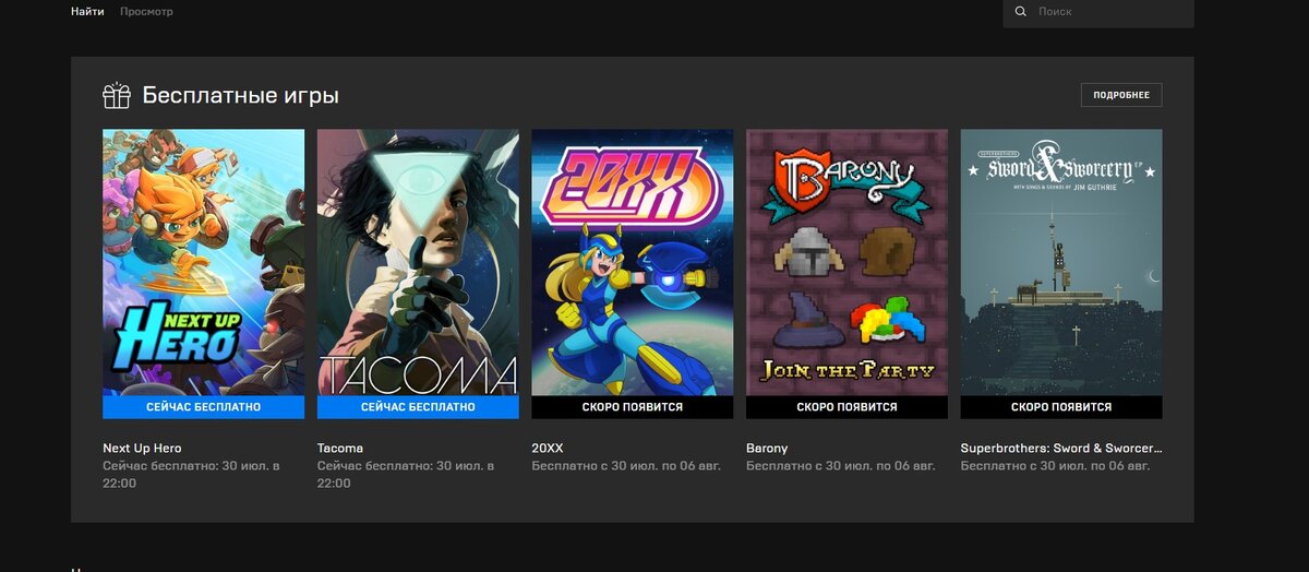 Очередная раздача в Epic Game Store и на этой недели раздают две игры Первая на очереди Tacoma Немного и игре : Заброшенная космическая станция. Загадочный искусственный интеллект. И вы. Обычный рабочий день команды лунной станции пересадки Такома превратился в хаос в результате катастрофы. Узнайте, что стало с каждым членом экипажа, в этом смелом и новаторском проекте Вторая игре у нас : Next Up Hero Немного о игре: Next Up Hero — это бродилка по подземельям с участием рисованных героев, которые истребляют монстров с помощью мечей, бумерангов, барабанов, реактивных двигателей и других подручных средств. Выберите героя, бросайтесь в подземелья, собирайте снаряжение и прокачивайте параметры Раздача будет с 23 до 30 июля следующими играми будут: 20XX, Barony, Superbrothers: Sword & Sworcery EP И сегодня началась распродажа в EGS и скидки до 75%