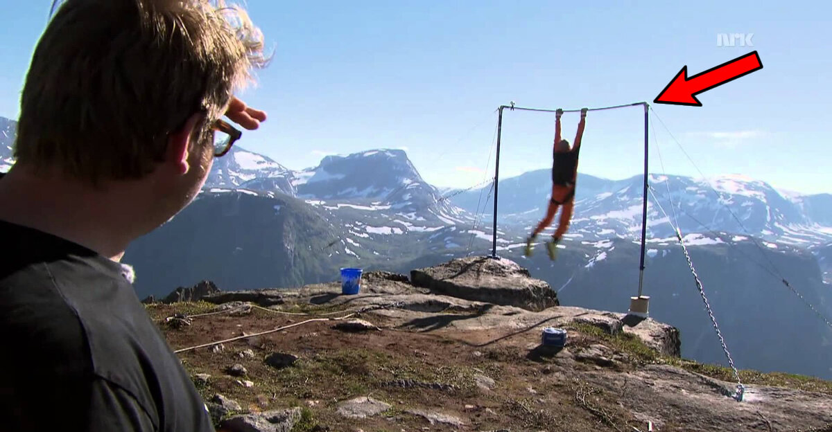Во время съёмок фильма в долине Эйкесдал на западе Норвегии об экстремальном спорте чуть не случился несчастный случай. Съёмочная группа планировала заснять кадры с Рикардом Хенриксоном и Андре Бахом. Задачей спортсменов было выполнение акробатического трюка. Необходимо было выполнить акробатическую связку на краю пропасти глубиной в 1200 метров. Затем спортсменам было необходимо прыгнуть в бездну и раскрыть парашюты. Первый начал выполнять упражнение Рикард. Он раскрутился на турнике и уже почти выполнил сальто, как вдруг турник сорвался с креплений. Спортсмен начал падать в пропасть. Но он не растерялся и дёрнул кольцо парашюта и приземлился без травм. По словам самого бейсджампера, его спасло то, что он пошёл вниз ногами. "Если бы я полетел вперед головой, я был бы мертв", - сказал Хенриксон позже. По словам спортсмена, произошедшее едва ли повлияет на его желание заниматься экстремальным спортом.