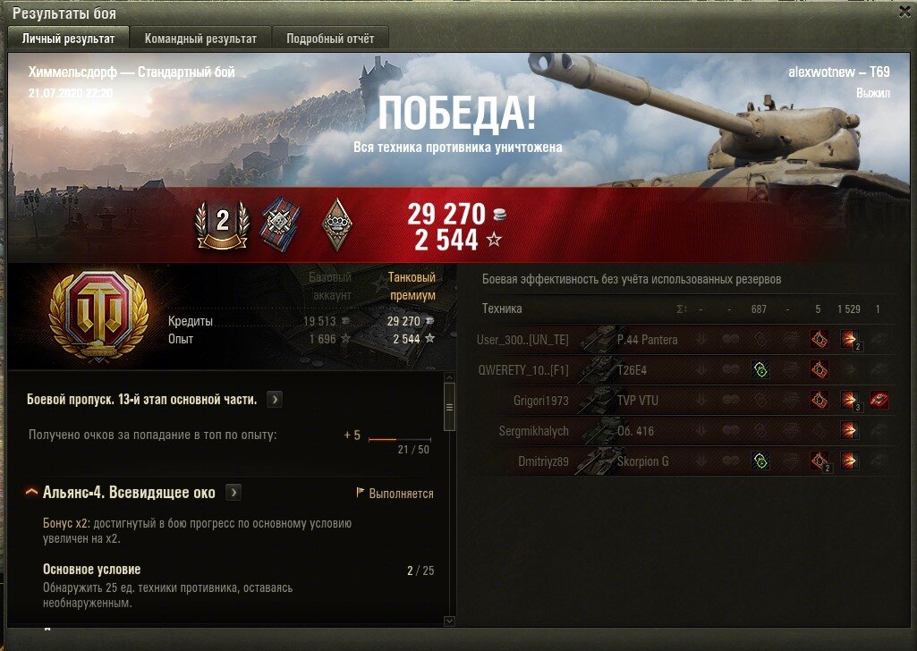 Играя на Химмельсдорфе для такого ст как Т69 есть только одно направление - гора. Впрочем, многими экспертами гора вообще признана доминирующей позицией на карте и едут туда все, от мала до велика. Поворачивая со старта направо я ожидал похожей картины, но оказалось что к вершине поднимаемся мы вдвоем с UDES 14 5. ТТ дежурно столпились у основания узкого выгнутого коридора, сборная стайка разместилась поближе к жд, отчаянный Т-54 1 обр. нетипично рванулся по центру, рассчитывая брать засветом. Со стороны соперника движений на гору замечено не было, вплоть до самого подъезда, где наткнулись на оголтелый прыжок TVP VTU и Об.416. Где-то неподалеку высветилась Progetto 46, но прямой угрозы не несла. Оба выскочивших танка особой опасности не представляли, я поначалу даже думал, что мы их вдвоем и уберем, однако при первой же стрельбе нарисовалось еще 4, то есть всего группа соперника насчитывала уже 7 танков, причем один другого страшнее. Заменив благородство благоразумием я ретировался по
