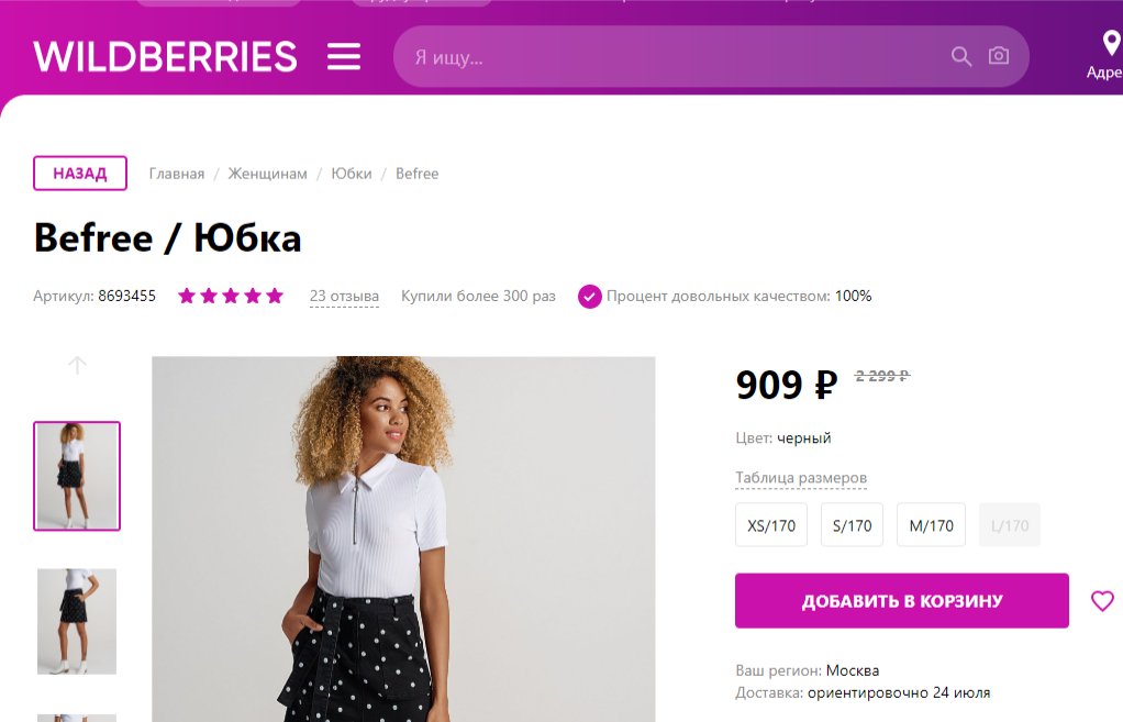 В 7-ом сезон шоу "Холостяк", где завидным женихом был стоматолог Антон Криворотов, победила Барбара Пино. Необычная внешность срязу привлекла всех телезрителей. Как и большинство участниц шоу, Барбара модель, но никто не задумывался, где. Сама Барбара в своём инстаграм ничего не говорила о сотрудничестве с магазином befree. Но и тот факт, что она не на обложке VOGUE, а на WIDLBERRIES, не заставит фанатов разлюбить её.