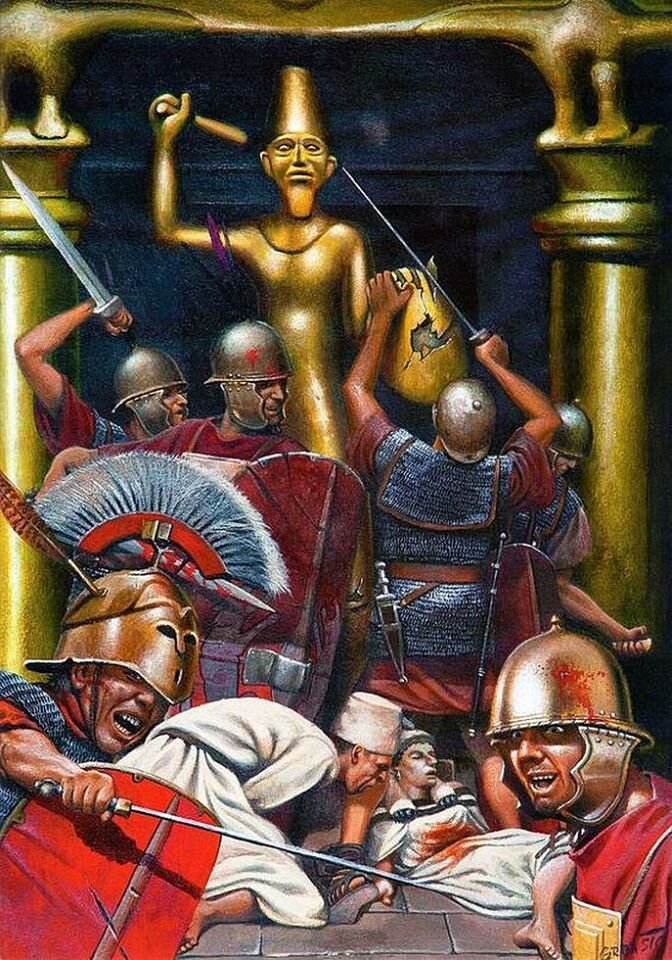 Только 900 римских перебежчиков и Гасдрубал с женой и двумя детьми укрылись в храме бога-целителя: для дезертиров и для палача римских пленных не могло быть пощады. Но когда самые решительные из них, изнемогал от голода, подожгли храм, у Гасдрубала не хватило мужества взглянуть смерти в лицо; он один выбежал из храма и на коленях молил победителя пощадить его жизнь. Ему была дарована эта милость.