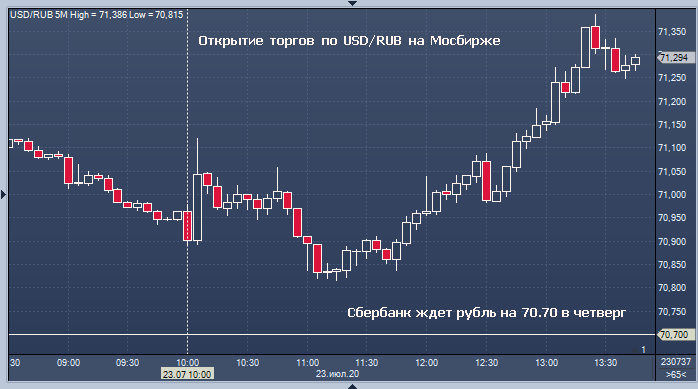 Инвестиционный директор Sberbank Asset Management Ренат Малин считает, что сегодня российская валюта может укрепиться до 70,70 за доллар в первой половине дня из-за отсутствия серьезных негативных новостей. Это будет поддерживаться экспортными продажами. Недостатком является покупка иностранной валюты в рамках конвертации рублевых дивидендов нерезидентами. Дипломатическая война между США и Китаем далека от рынков и еще не привела к значительному ослаблению спроса на рискованные активы, что благоприятно для рубля.