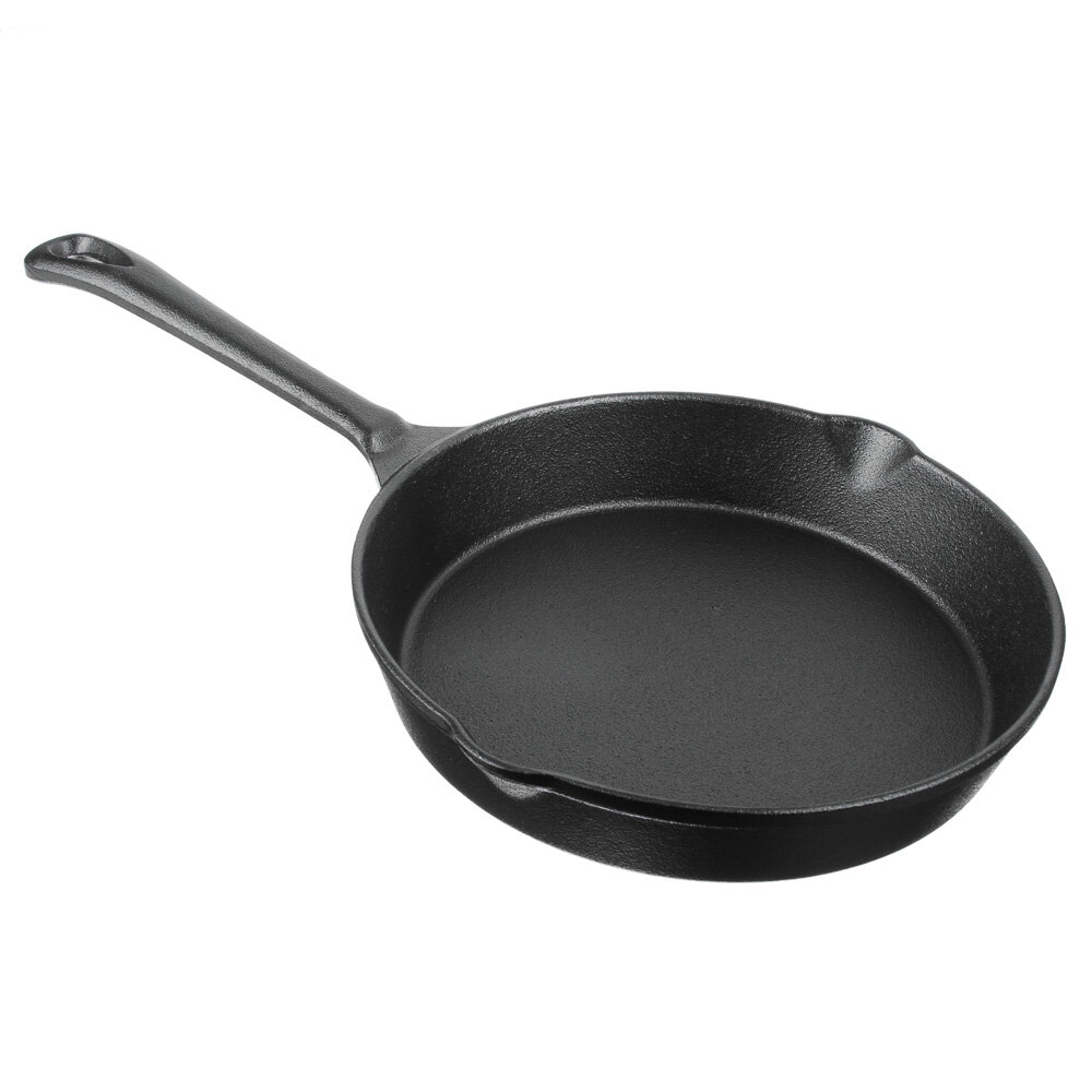 Диаметр сковороды 20 см. Такая тяжелая чугунная сковорода идеально подойдет для приготовления блинов. Есть 2 слива, видимо для того, чтобы без проблем можно было слить жир. Изготовлена в Китае. Цена сечас по акции 575 руб (-17%) 479 руб.