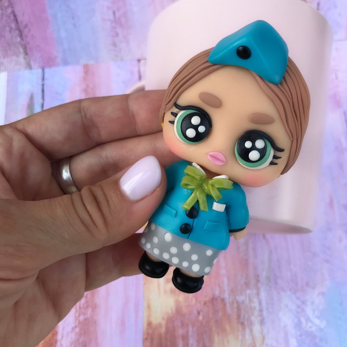 1.Одна из последних работ- куколка лол с условным сходством. Такие работы я публикую коллажем вместе с фотографией человека. А тут, как видите, стюардесса. Им нельзя выкладывать в интернет фото в форме, поэтому эта будет в стандартной публикации