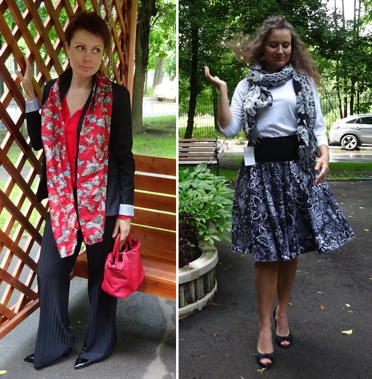 Платки и шарфы – это замечательные элементы гардероба, которые должны быть в платяных шкафах всех модниц. Одним платком или шарфом можно до неузнаваемости преобразиться, необязательно менять одежду, достаточно лишь надеть на себя новый шарф или платок. Рассмотрим, какие виды подобных аксессуаров бывают: Капсульные комплекты составлены из магазина секон-хенд "МК и Точка" Пиджак черный (арт.ZPI150787) - 600 руб. Блузка красная (арт. ZBL0508837 ) - 325 руб. Брюки черне полоску (арт.ZBR1906812) - 350 руб. Лонгслив белый (арт. ZBL0707812) - 324 руб. Юбка цветная (арт.ZPL2307831) - 360 руб. Палантин (арт. ASA05070721) - 140 руб. Скидка на все товары магазина по промокоду ZEN 40 - 40% до 09.08.2020 г. · Кашне. Данные изделия носят как мужчины, так и женщины, прямоугольные аксессуары отличаются большими размерами и бескомпромиссным внешним видом; · Под шалью понимают вязаные или тканые платки, квадратной или треугольной формы, которой можно накрыть голову или укрыть шею с грудью; · Пала