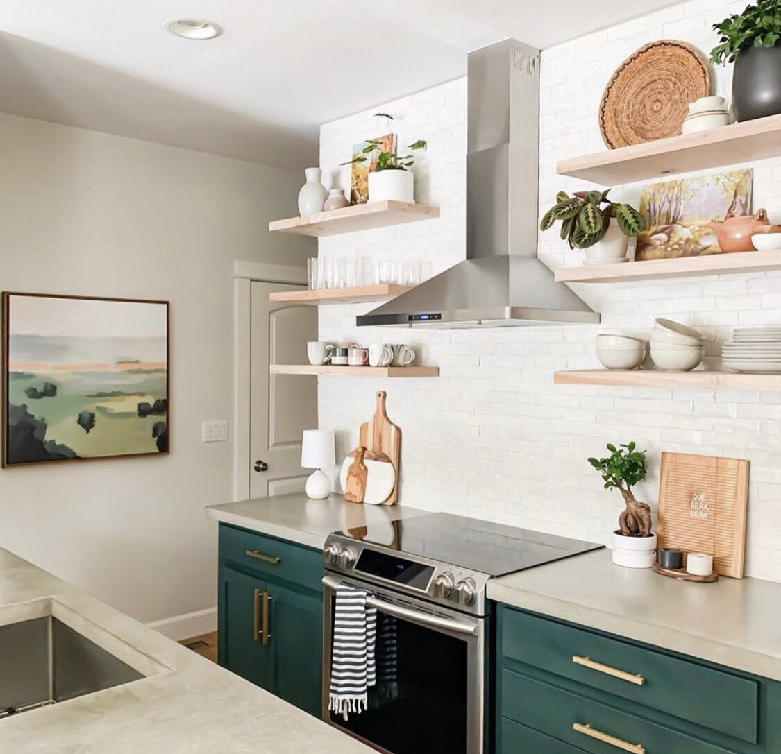 Мне нравятся открытые полки в интерьере кухни. Они придают легкость кухне и интересный дизайн, а ещё на этих полках можно разместить красивую посуду или декоративные штучки😉. 👍 Использование открытых полок в рамках кухонного интерьера стало достаточно популярным дизайнерским приемом, которым пользуются как профессионалы, так и обычные хозяева квартир и частных домов. 👍 Открытые полки могут быть использованы в качестве замены кухонных шкафов или стать их эффектным дополнением. 👍 И могут выступать не только в качестве систем хранения, но и декоративного элемента современного интерьера. 👍 Экономическая доступность, практичность и простота исполнения позволили открытым полкам стать практически универсальным дизайнерским решением для кухонных интерьеров самых разнообразных стилей. 👍 Несложно представить открытые полки в современном стиле оформления кухни или стилистике кантри. 👍 Даже такие непростые с точки зрения исполнения стили как минимализм и классический могут с легкостью перен