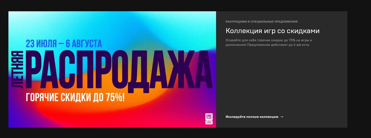 Летняя распродажа 2020 в EPIC GAMES STORE СКИДКИ ДО -75% С 23ИЮЛЯ ДО 6 АВГУСТА