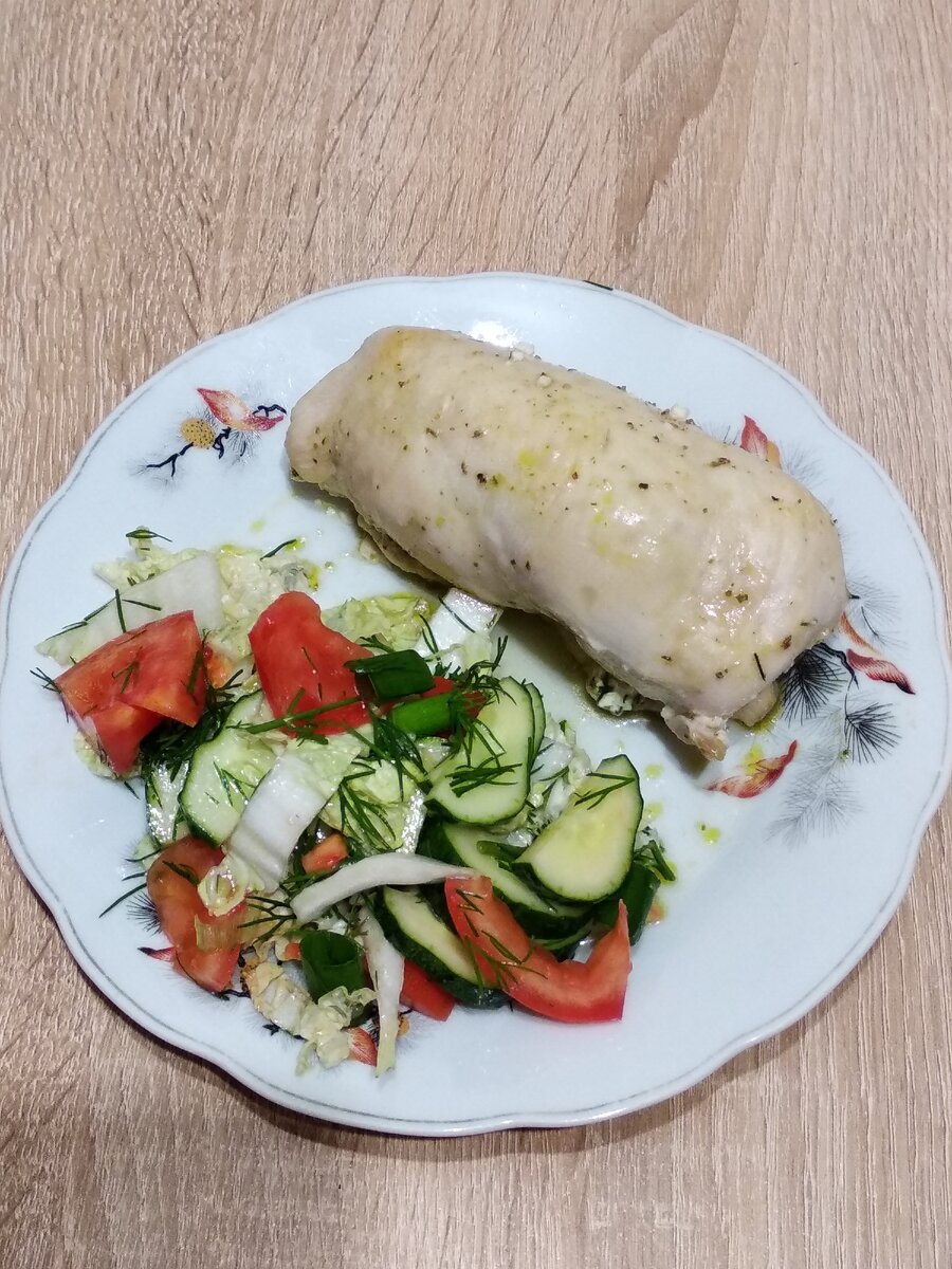 Сегодня ужин по-итальянски 🍅🍝 . Грудка получилась очень сочная, главное хорошо отбейте, чтобы хорошо завернуть в рулет 😋 Ингредиенты: 🍥 Куриная грудка - 500 гр. 🍥 Творог - 150 гр. 🍥 Вяленые помидоры 🍥 Соус "Песто" 🍥 Укроп 🍥 Чеснок - 2 зубчика 🍥 Соль, смесь перцев по вкусу Начинаем готовить: 🍬 Укроп мелко режем. Чеснок выдавливаем. Все добавляем в творог и тщательно все перемешать. 🍬 Грудку разрезаем, хорошо отбиваем. Солим, перчим. 🍬 Грудку намазываем соусом песто, кладём творог, сверху вяленые помидоры. Закручиваем в рулет. 🍬 Рулетики кладём в противень и ставим в разогретую духовку до 180 градусов на 25-30 минут. Приятного аппетита!