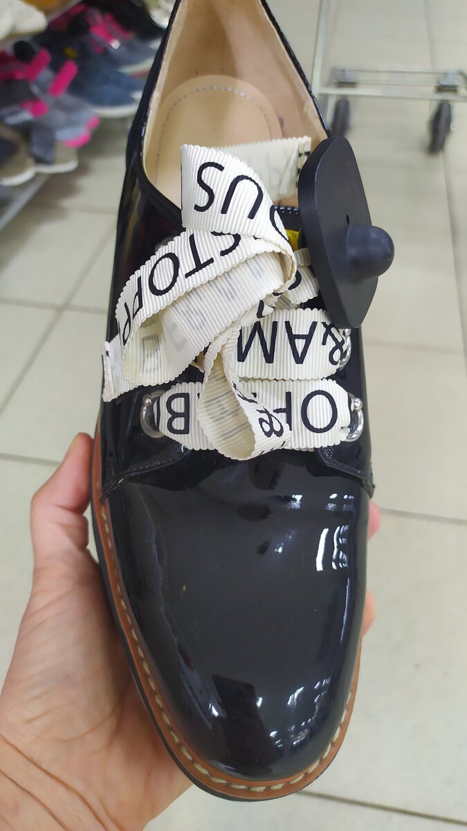 Изумительные лаковые ботинки с лентами-шнурками. Очень классные. Думаю, что их забрали в первые дни.