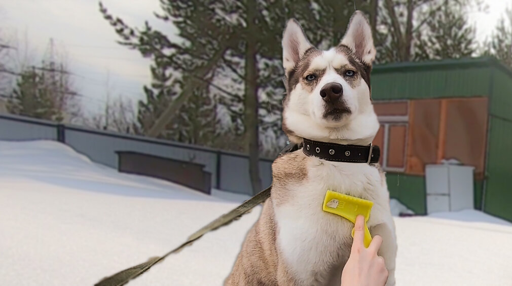 Хаски линяют два раза в год: осенью и весной. В этот период их нужно вычёсывать ежедневно, в остальное время - хотя бы раз в неделю. Для этого я использую пуходёрку. Она удаляет все отмершие волоски с подшёрстка.