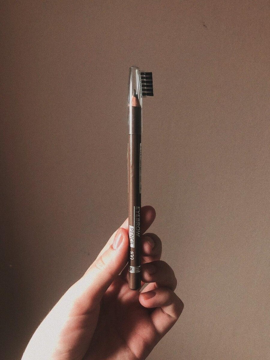 Только сегодня обнаружила, что здесь не было карандашей для бровей — не порядок, однако! У меня два любимых белорусских карандаша и это — один из них. Главная прелесть этого карандаша состоит в том, что за счёт его умеренной твердости, им не нарисуешь графичные четкие брови — для меня это плюс, а не минус. Он идеально подходит для создания едва заметной полутени, которая оформляет бровь в нужную естественную форму, но при этом не даёт ни единого повода думать, что вы производили какие-то манипуляции у бровиста. Мол, смотрите — все своё, родное, как здесь: Им можно прорисовывать четкие волоски, но при этом он даёт едва уловимую полутень в растушеванном состоянии (см. свотч ниже). И самое приятное — за счёт своей текстуры он очень и очень стойкий и никуда не девается в течение дня. В палитре 7 оттенков, нужный найдётся и для блондинки, и для брюнетки. У меня 100-ый оттенок или Taupe — идеальный нейтральный коричневый, который не рыжит. Не удивляйтесь, что на фото очевидно новый карандаш