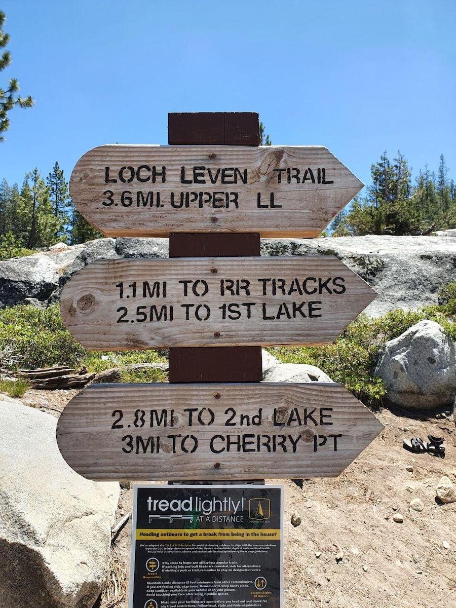 Следующая поездка в Национальный лес Тахо не заставила себя долго ждать, выдержали мы чуть больше месяца без горного воздуха и видов. На сей раз решили посетить лес с другой стороны и повидать цепочку озер Loch Leven. Мы распланировали себе красивый маршрут на 3 дня, и вот что из этого получилось. По приезду на место вся стоянка была заполнена, яблоку было негде упасть, однако наше местечко досталось нам. До озера было идти совсем ничего: только 5 км, на которых мы набрали около 300 м. А тот факт, что мы вторые сутки не ели, совсем нас не смущал, нас даже не так много кто и обогнал. Сверху открываются чудесные виды. Но есть одно НО: на большей части маршрута хорошо слышна трасса, так как она расположена в ущелье. Радость состоит в том, что за перевал, который мы проходили, ни один звук машин уже не доносился, и мы оказались вновь среди таких приятных уху звуков природы. Увидев место, мы очень обрадовались, т.к. оно было эстетичным, окружено высоким лесом, хорошие места под палатку рас