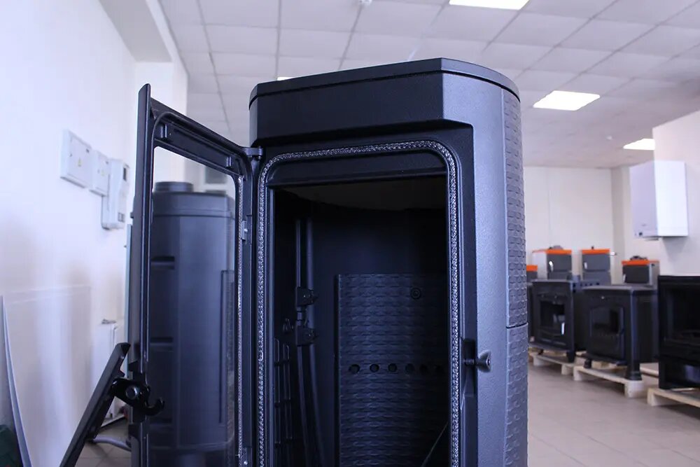 Благодаря лаконичному дизайну печь-камин Plamen Nera гармонично впишется в любой интерьерный стиль, от классики до минимализма. Она представляет собой вытянутый чугунный цилиндр, покрытый огнеупорной эмалью нейтрального чёрного цвета. Верхнее подключение и небольшие габариты (1185х480х480 мм) делают изделие компактным и позволяют расположить его даже в маленьком помещении, например, в гараже, мансарде. Цилиндрическую печь-камин можно поставить возле стены или в углу.