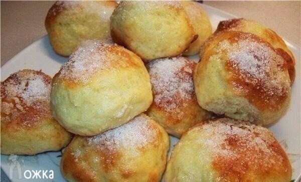 Такие булочки подойдут для любого события: и завтрак быстро придумать, и гостей угостить, и себя просто порадовать. А главное, что все ингредиенты почти всегда есть в холодильнике) Берем: 250 гр пастообразного творога 2 яйца 5 ст.л. сахара щепотка соли 1 п. ванильного сахара (10 гр) 1 п. разрыхлителя (15 гр можно меньше) 250 гр муки 1-2 ст.л. молока для смазки можно добавить изюм Как готовим: Творог, яйца, сахар, ванильный сахар и соль смешать до однородности. Просеять муку с разрыхлителем и замесить мягкое, липучее тесто. Противень застелить пекарской бумагой и смазать подсолнечным маслом. Влажными руками сформировать булочки, выложить на противень и запекать в предварительно разогретой духовке при 190С примерно 12-15 минут. Потом достать булочки, смазать молоком , посыпать сахаром и опять в духовку на 3-5 минут, до подрумянивания. Приятного аппетита!