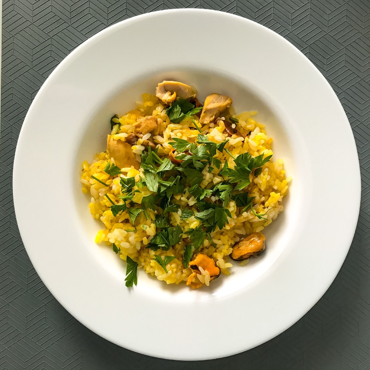 «Паэйа» — именно так произносится на родине название этого блюда. В России мы говорим — паэлья.⠀ ⠀ Три кита, которые составляют ее основу:⠀ ⠀ 🍚 Рис⠀ 🍚 Оливковое масло⠀ 🍚 Шафран⠀ ⠀ Дальше — дело фантазии. Паэлья — стерео блюдо, многокомпонентное. В самой Испании насчитывается более трехсот ее видов. Я делюсь рецептом с мидиями и курицей.⠀ ⠀ ✅ Ингредиенты:⠀ ⠀ •Рис круглозерный — 400-500 гр⠀ •Лук репчатый — 1 шт⠀ •Чеснок — 3 зубчика⠀ •Филе куриного бедра — 300 гр⠀ •Болгарский перец — 2-3 шт⠀ •Мидии — 200 гр⠀ •Оливковое масло ⠀ •Шафран — 1 упаковка⠀ •Соль, перец — по вкусу⠀ •Свежая зелень — для подачи⠀ ⠀ ✅ Приготовление:⠀ ⠀ ▪️ Обжариваем в достаточно большом количестве оливкового масла лук и чеснок. Когда лук станет прозрачным, добавляем курицу. Солим и перчим по вкусу.⠀ ⠀ ▪️ Пока обжаривается курица, завариваем в небольшом количестве кипятка шафран.⠀ ⠀ ▪️ Добавляем в сковороду болгарский перец, мидии и настой шафрана (без тычин