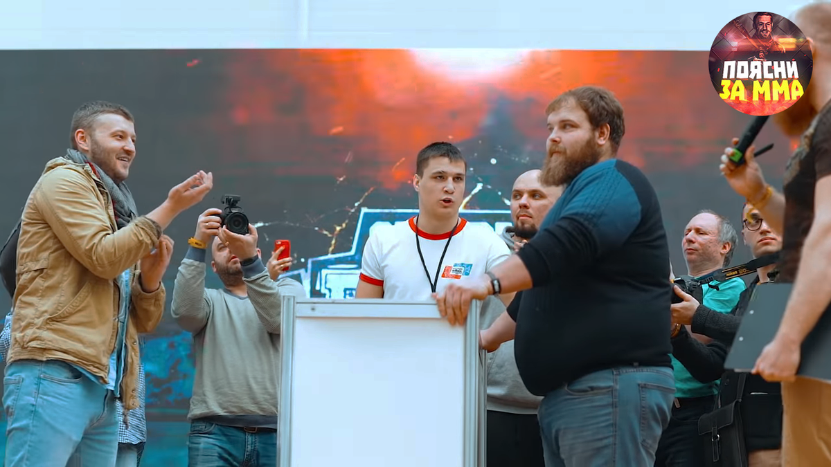 Из всех участников интерес вызвал поединок между парнем в коричневой куртке и простым толстяком.