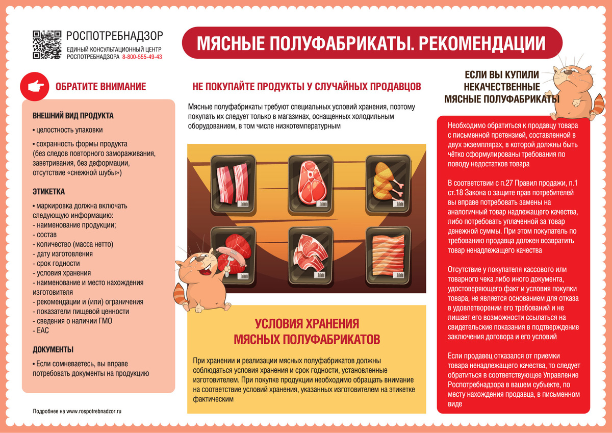 В Управлении Роспотребнадзора дали рекомендации, как следует выбрать мясные полуфабрикаты. Не покупайте продукты у случайных продавцов В соответствии с Правилами продажи отдельных видов товаров, утвержденных Постановлением Правительства РФ от 19.01.1998г. № 55 (далее Правила продажи) продавец обязан довести до сведения покупателя фирменное наименование (наименование) своей организации, место ее нахождения (юридический адрес) и режим работы, размещая указанную информацию на вывеске организации. Продавец – индивидуальный предприниматель должен предоставить покупателю информацию о государственной регистрации и наименовании зарегистрировавшего его органа. Указанная информация размещается в удобных для ознакомления местах. Аналогичная информация также должна быть доведена до сведения покупателей при осуществлении торговли во временных помещениях, на ярмарках, с лотков и т.д. При осуществлении разносной торговли представитель продавца должен иметь личную карточку, заверенную подписью лица, о