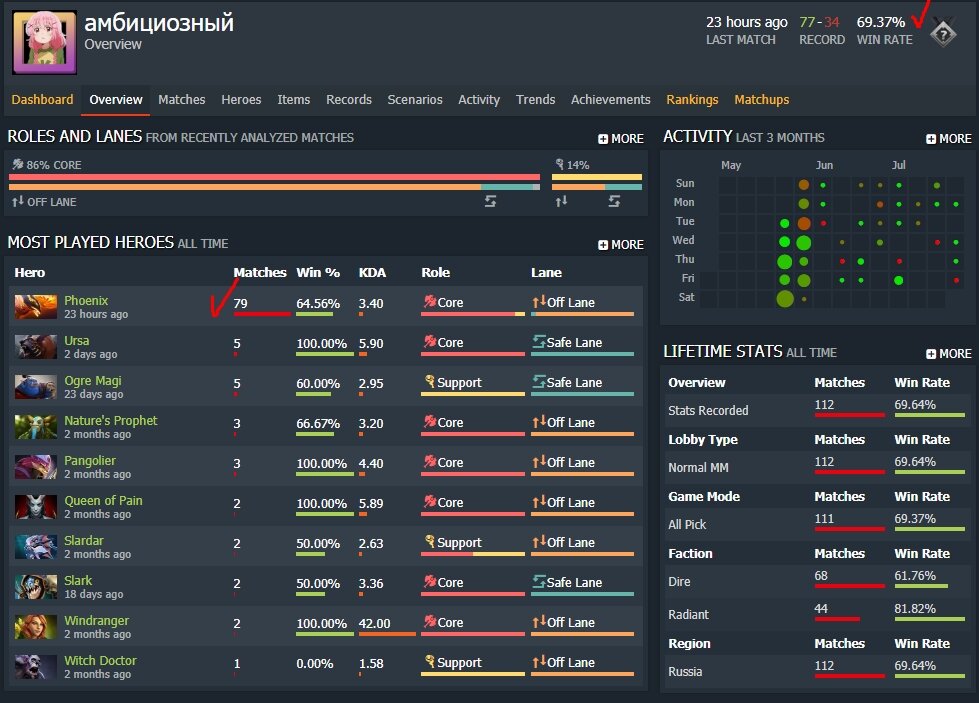 Что бы откалибровать 5к+ ммр нужно: ● Сделать VHS(ВХС), это можно посмотреть в DOTABUFF ● Иметь хороший винрейт. 60-70% ● Хороший КДА. Можно калиброваться даже на саппортах, главное вносить импакт. ● Сам я играю на 3ке фениксе и вношу миллион импакта. Продолжаем в том же духе и 5к ммр будут ждать нас)