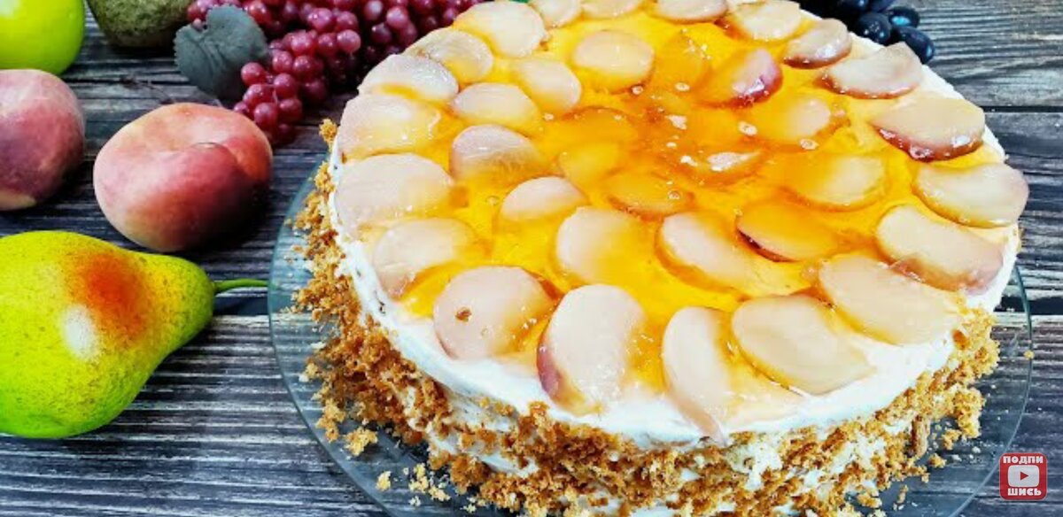 Этот торт можно готовить из любых свежих и консервированных фруктов. Каждый раз будет получаться новое блюдо. Приятного аппетита ИНГРЕДИЕНТЫ: ТЕСТО: яйца 5 шт. сахар 150 гр. просеянная мука 110 гр. ванильный сахар 1 ч. л. КРЕМ: сметана 450 - 500 гр. сахар 60 - 80 гр. загуститель для сметаны 12 - 16 гр. ванильный сахар 1 ч. л. ФРУКТЫ: свежие абрикосы без косточки 400 гр. свежие персики без косточки 250 гр. сахар 2 - 3 ст. л. вода 200 гр. персиковое желе 1 пакет
